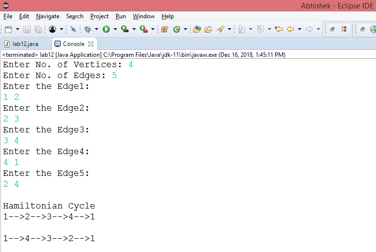 12 - Design and implement in Java to find all Hamiltonian Cycles in a connected undirected Graph G of n vertices using backtracking principle.